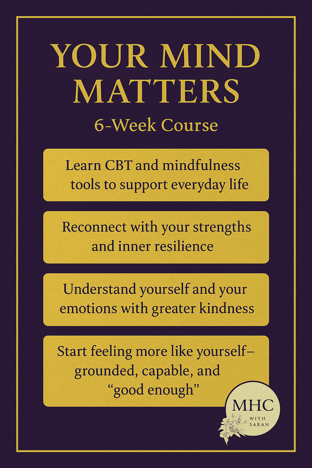 Your Mind Matters is a 6-week group programme designed to give you practical tools and a supportive space to explore your mental health. Each course is shaped by the group itself — the themes we cover reflect what feels most relevant and important to those attending.